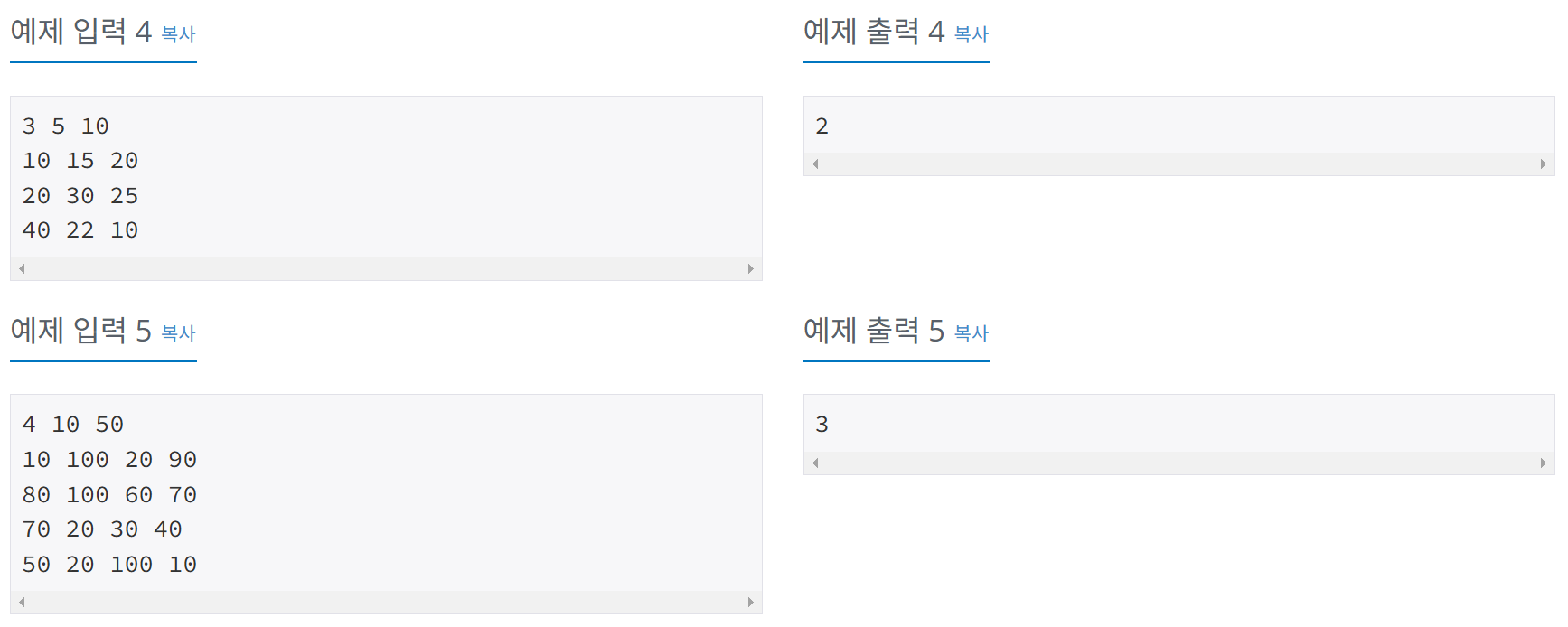 이 문제 풀이의 핵심은 모든 좌표에 대해서 BFS/DFS를 수행해야 한다는 것이다. 연결되어 있지 않은 나라도 있을 수 있기 때문이다. 내가 처음에 풀었던 풀이에서부터 다음과 같은 오류들을 수정하였다.