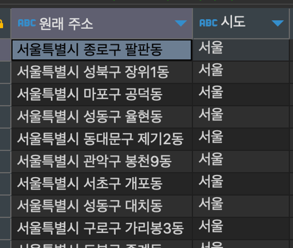 substr(addr, 1, 2) "시도"