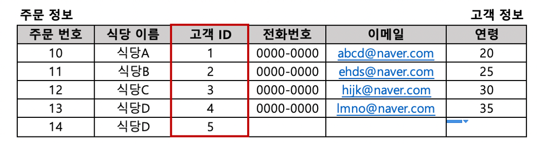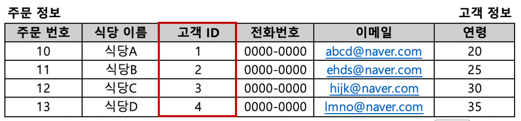 - 공통 컬럼을 기준으로 두 테이블을 합쳐서 각각 테이블에서 필요한 데이터를 조회할 수 있도록 해줌