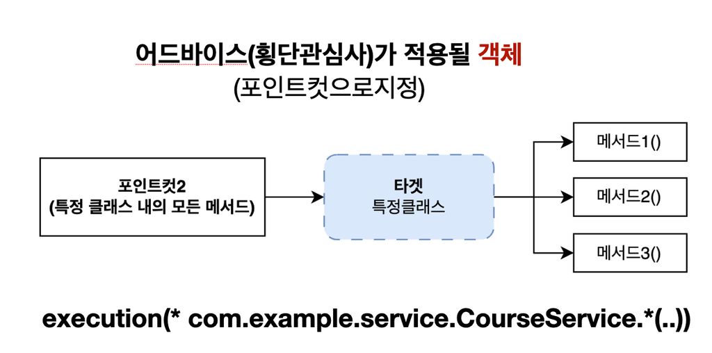 execution(* createCourse(..)) // 반환타입 상관없음, createCourse 이라는 매서드, 매개변수 상관없음