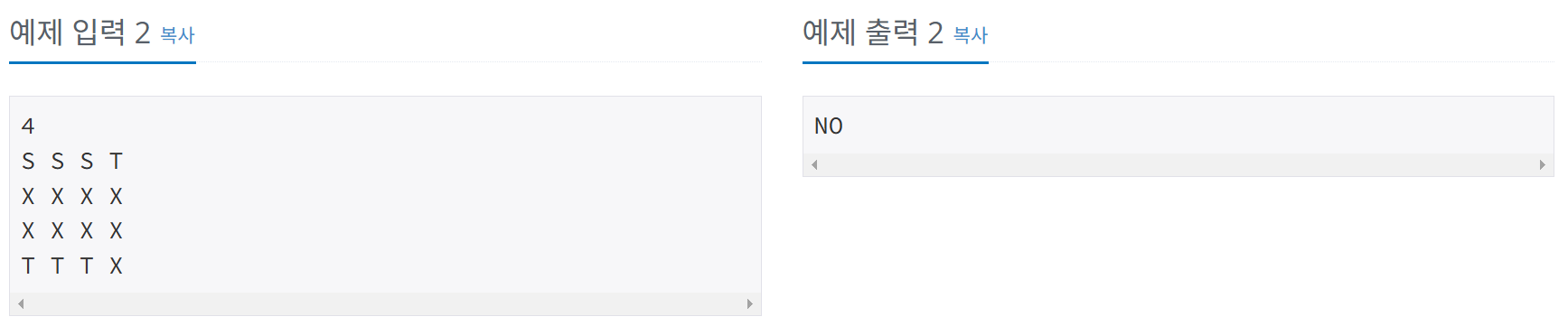 - NxN 크기의 복도에서 선생님(T), 학생(S), 장애물(O), 빈칸(X)이 주어진다.